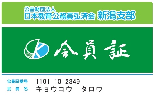 「新潟教弘会員証」とは? 教弘保険(集団契約特約付勤労保険・提携保険会社 ジブラルタ生命保険株式会社)にご加入いただいている方にお渡ししております。教弘保険にご加入いただいたことにより、新潟教弘の会員となり、福祉事業(新潟教弘の特典)をご利用いただけます。