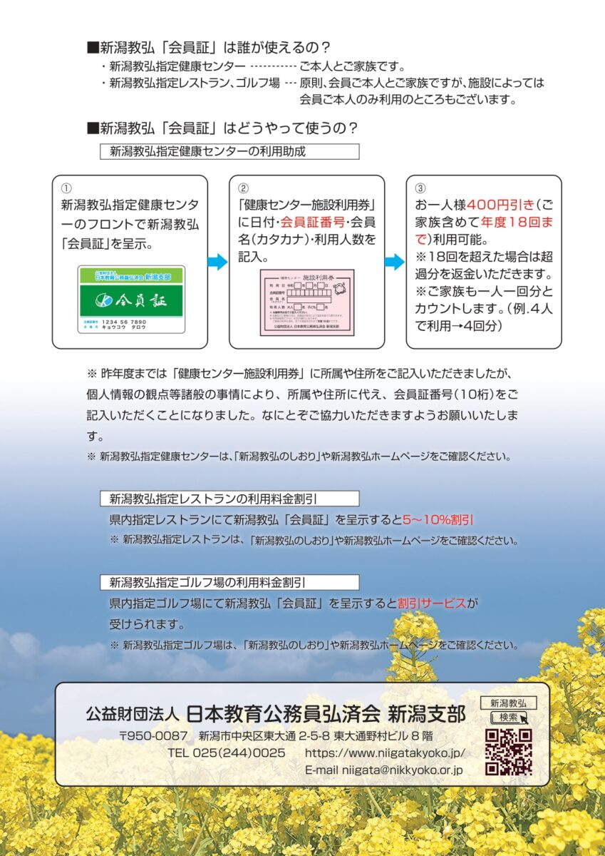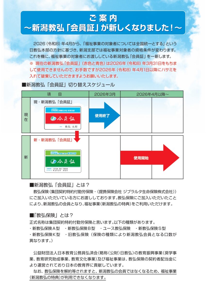 新潟教弘の会員証をリニューアルしました(教弘会員には3月中旬に送付済)